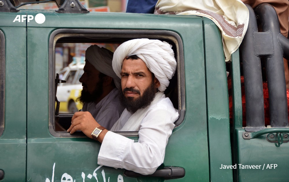Taliban fighters and supporters ride in a convoy to celebrate their victory day in Kandahar on August 15, 2022. Taliban fighters chanted victory slogans next to the US embassy in Kabul on August 15 as they marked the first anniversary of their return to power in Afghanistan following a turbulent year that saw women's rights crushed and a humanitarian crisis worsen.