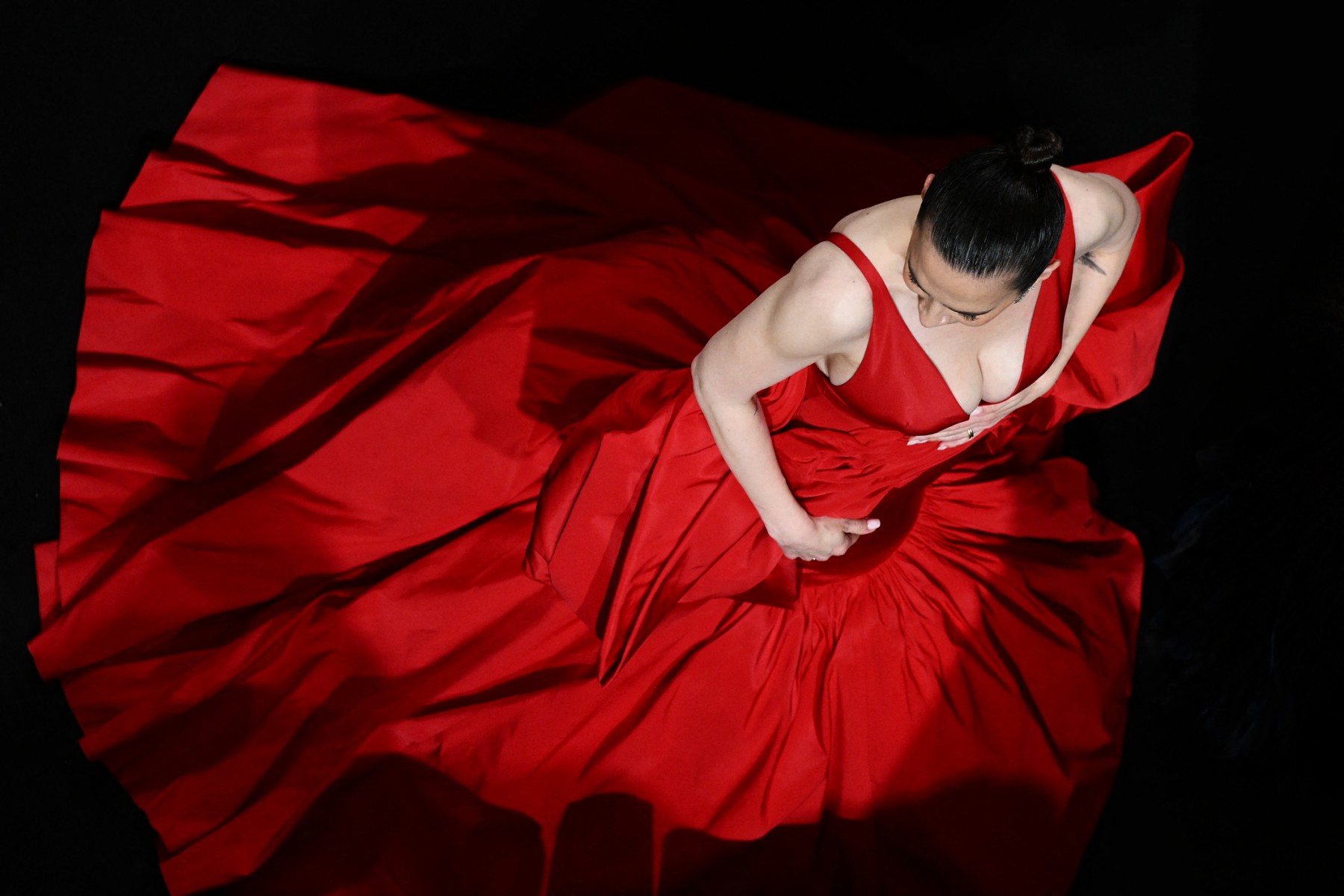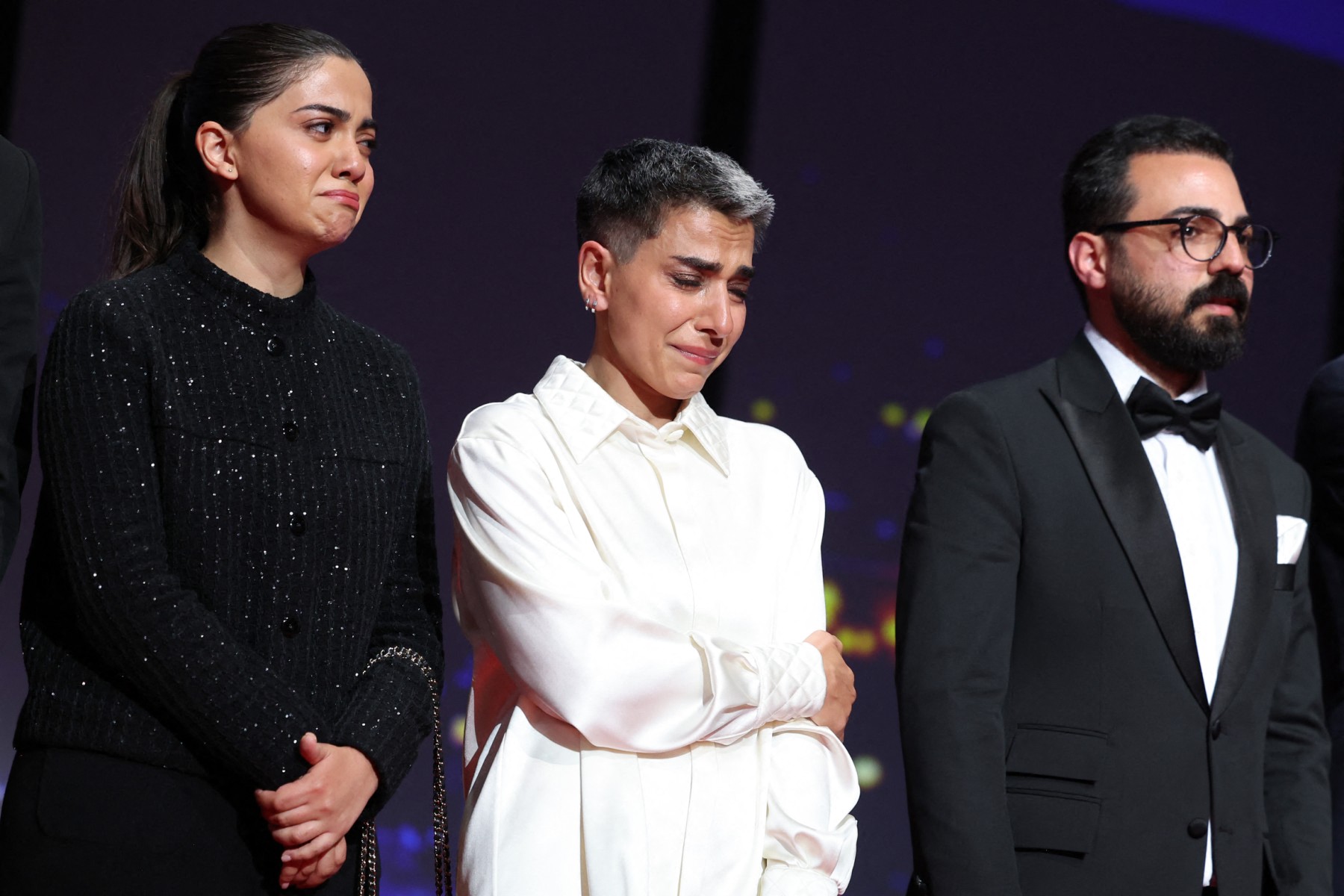 • 2e photo : L’actrice iranienne Maryam Afsharimovahed après la victoire du réalisateur, scénariste et producteur iranien Jafar Panahi, le 24 mai 2025. © Valery Hache / AFP