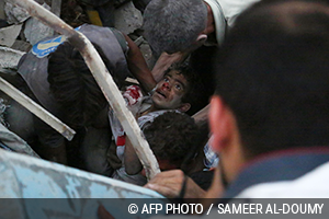 Sameer al-Doumy a reçu le 1er prix dans la catégorie « Spot News stories » pour sa série sur les conséquences des bombardements aériens du régime contre les forces rebelles dans Douma et Hamouria.